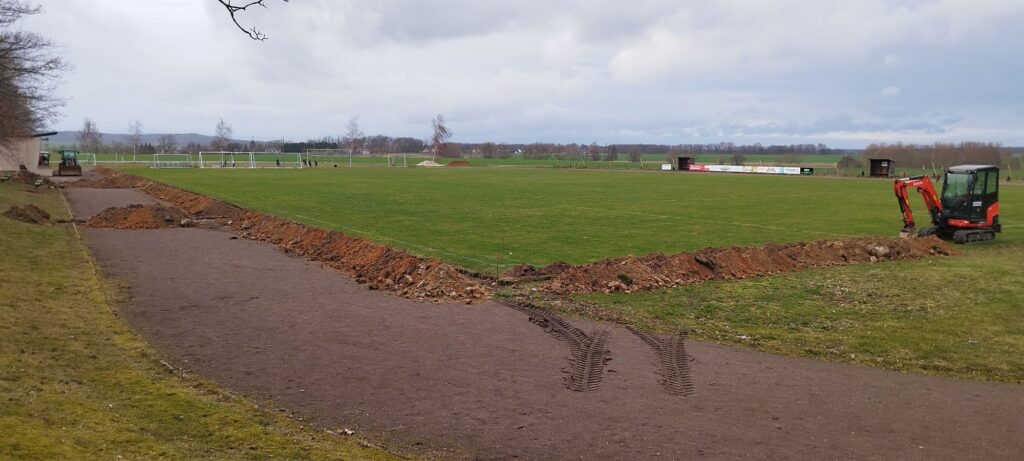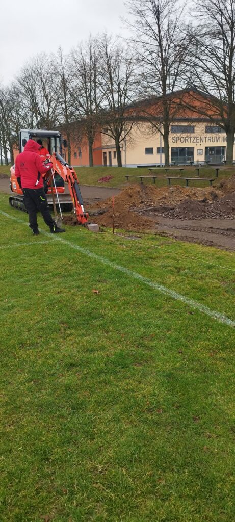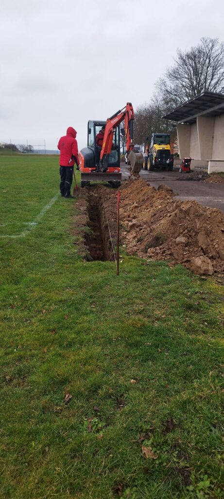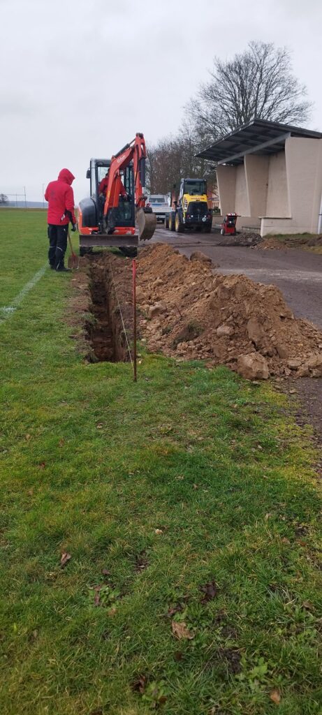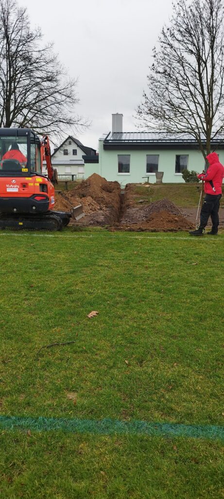 Baustart der Flutlichtanlage in Falkenhain